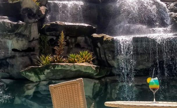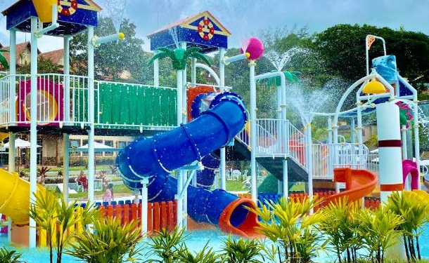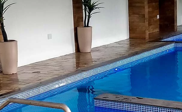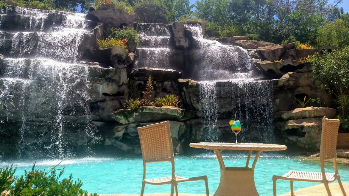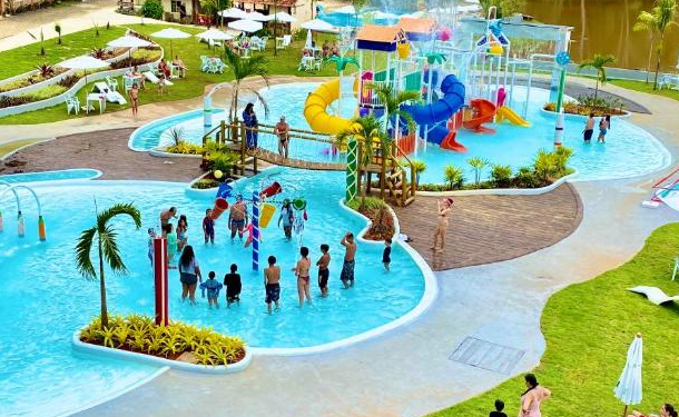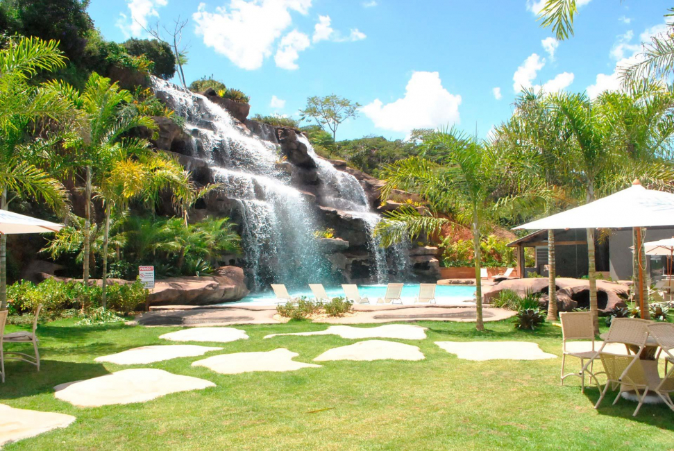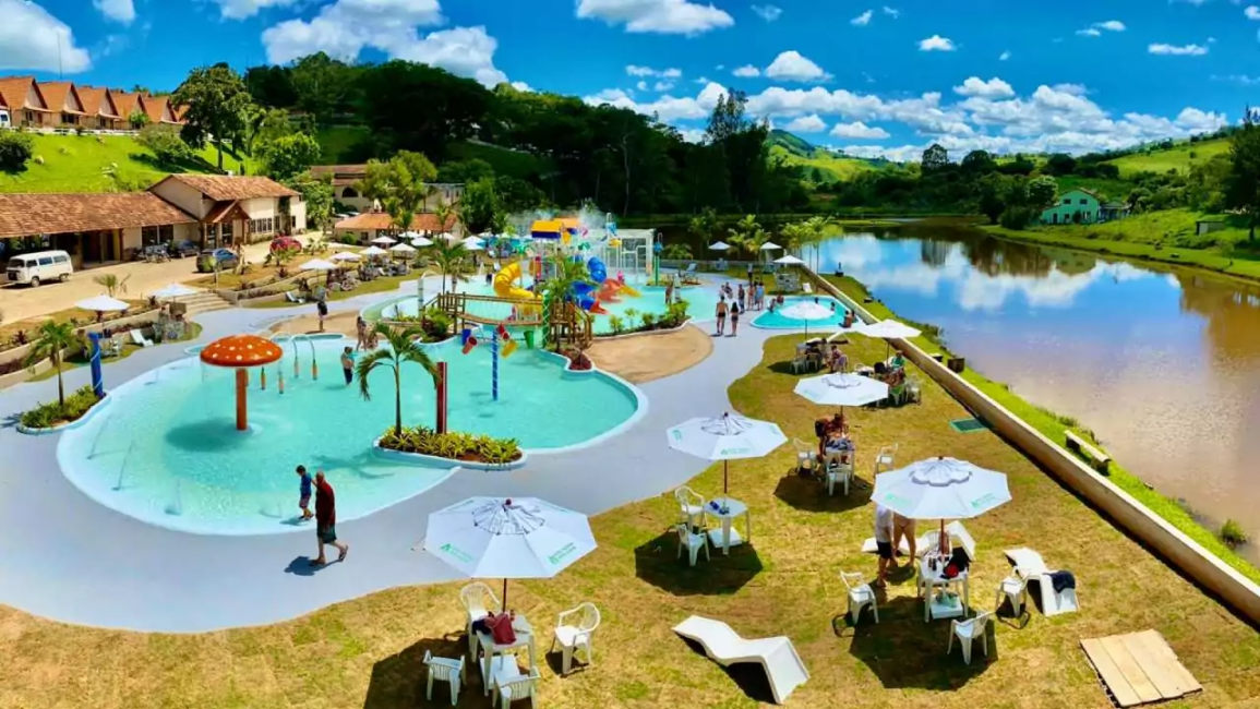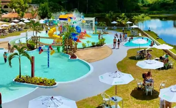 Parque aquático, piscinas, cachoeira, salão de jogos, quadras e muito mais.