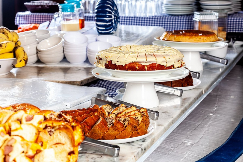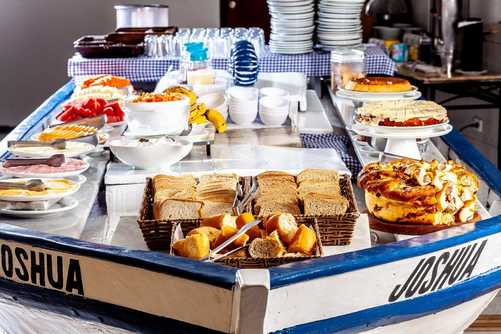 O hotel oferece um café da manhã completo e maravilhoso, priorizando a gastronômia local.