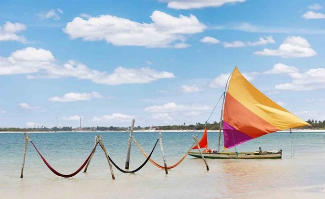 Por todo o espelho d´água, os bons ventos da região - considerada uma das melhores do país para a prática de esportes náuticos - conduzem jangadas e pranchas de kitesurf, que dividem o espaço em perfeita harmonia. Aproveite o passeio de bugue ou de jardineira pra chegar até lá.