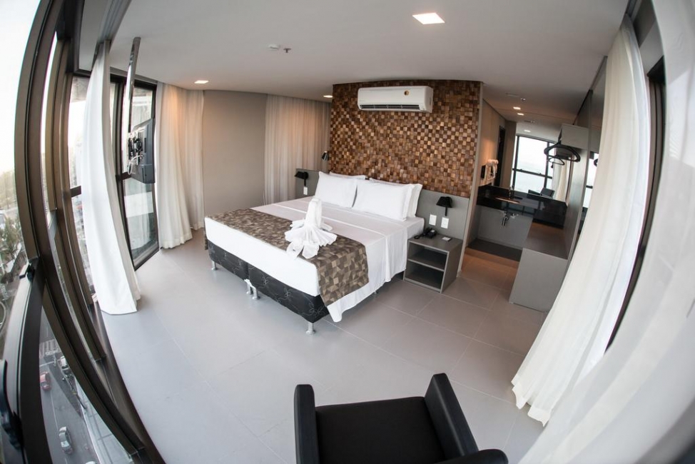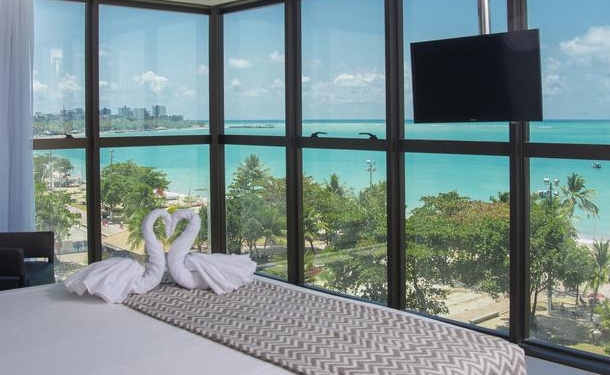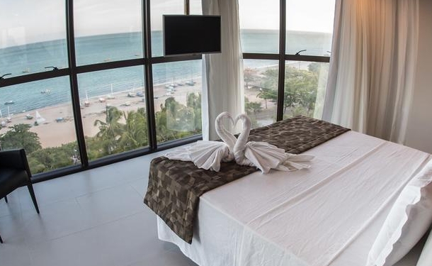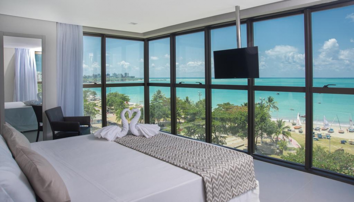 Sem dúvidas a melhor experiência oferecida pelo hotel, com uma vista da orla da Pajuçara em 180º, perfeita para casais que apreciam o nascer e o pôr do sol e procuram desfrutar deste cenário do próprio quarto do hotel. Banheiros completos e acessórios como secador de cabelos e espelho de aumento.