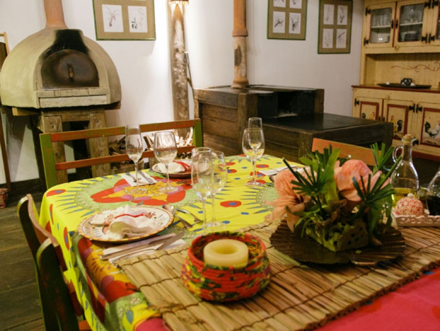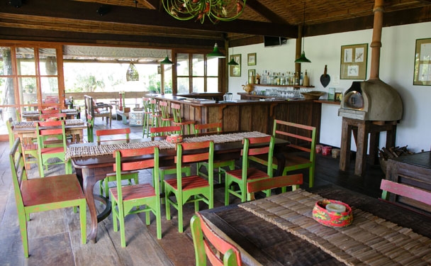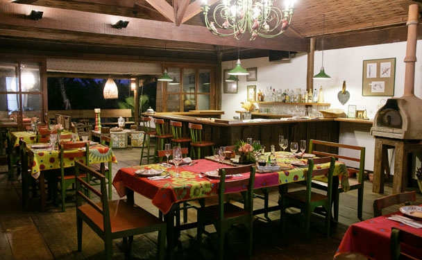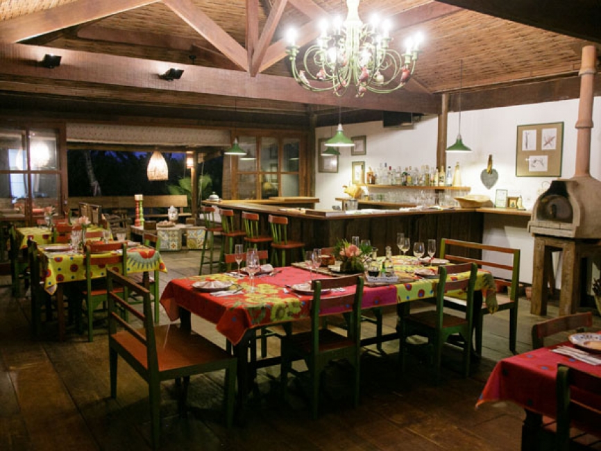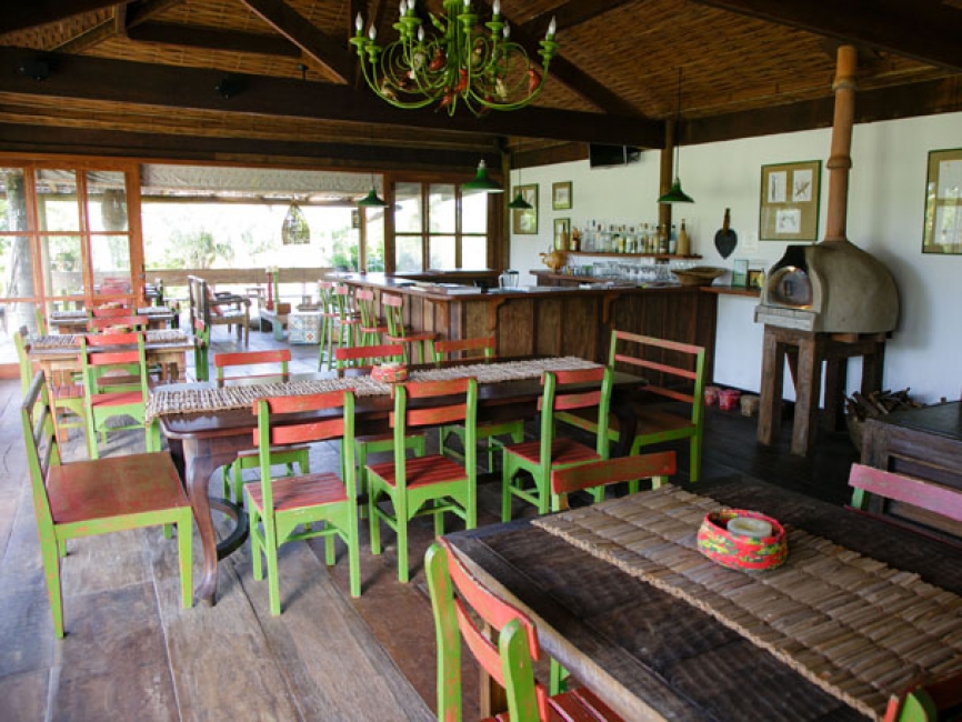 Construído em um espaço com elementos sustentáveis e integrado à natureza, o restaurante abriga forno de pizza e fogão à lenha, dando um toque especial nas refeições. A experiência de comer bem inicia logo pela manhã, onde é oferecido um delicioso café da manhã, típico da região, com direito a menu degustação. Já no almoço, servido em sistema de Buffet , as opções são variadas, e os alimentos feitos com ingredientes locais e produtos orgânicos vindos da própria horta. Aos domingos, seleção de pizzas artesanais feitas no forno à lenha onde você é chef!