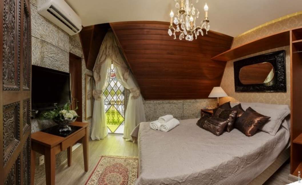 Esta categoria de Suíte do Castelo Hotel enquadra-se na categoria de suíte standard e dispõem dispõem de 1 cama de casal grande (151cm X 180cm), frigobar, TV de tela plana, canais a cabo, entrada privativa, piso de madeira/paquet, banheiro (com chuveiro e vaso sanitário), toalhas e roupa de cama.A diária é baseada na ocupação por 2 pessoas. A ocupação máxima é de 3 hóspedes (consulte as Políticas da Propriedade).