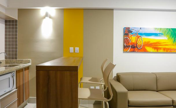 São 912 espaçosas e modernas suítes, com sala, 1 ou 2 quartos, 1 ou 2 banheiros, cozinha tipo americana e varanda. Todas as suítes são equipadas com microondas, frigobar, ar condicionado em todos os ambientes, TV a cabo e internet wi fi. As acomodações são para até 7 pessoas.