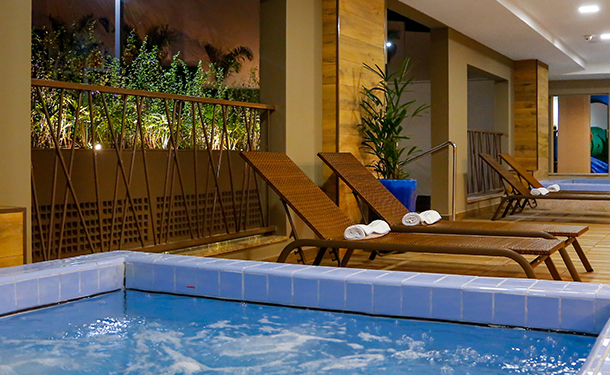O resort conta com piscinas de águas quentes e fria, spa, playground, brinquedos aquáticos, academia , brinquedoteca, lojas, bares e restaurantes, e proporciona traslado para o Thermas dos Laranjais além de um entretenimento incomparável, praticidade e excelente custo benefício, e na melhor localização da cidade.