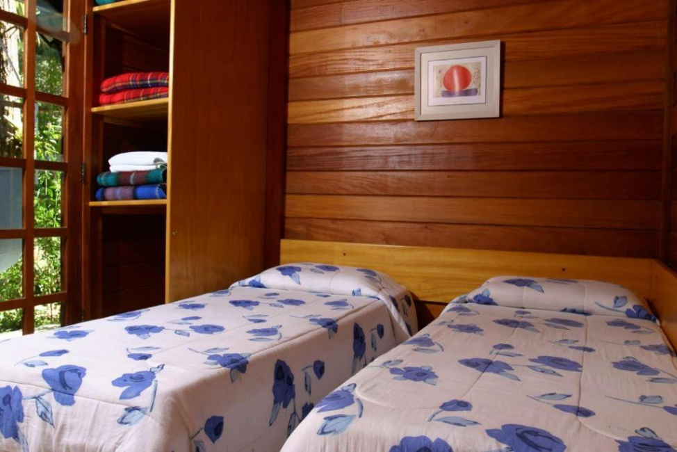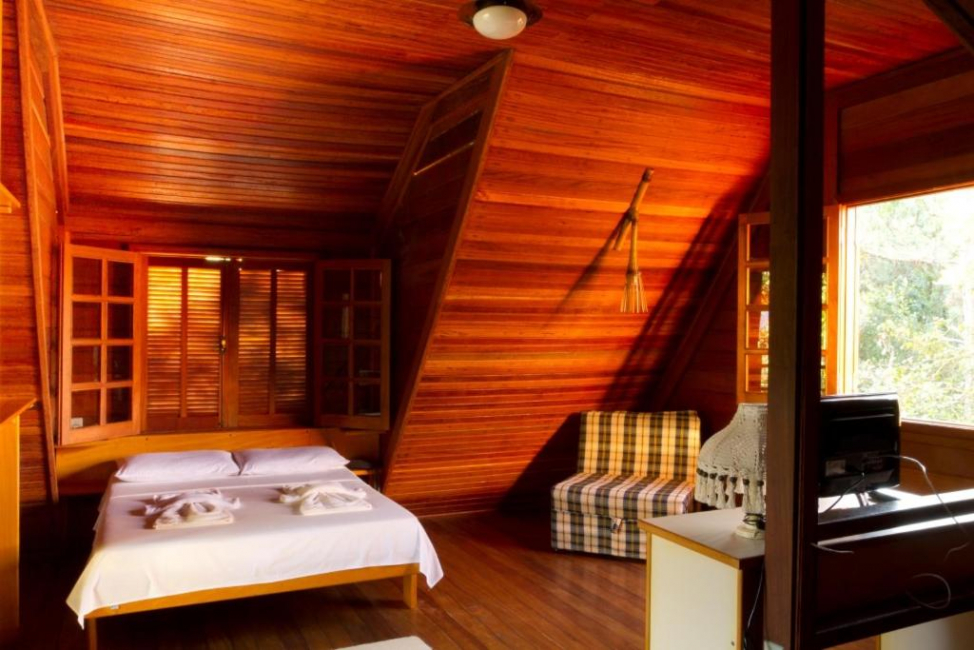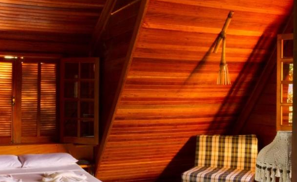 O hotel possui seis tipos de chalés pra você escolher o que mais se parece com seu estilo. Desde os panorâmicos, em meio à copa das árvores, além dos chalés em alvenaria com lareira para as noites mais frias, e também opções com hidromassagem para relaxar. Todos oferecem muito aconchego e charme e são equipados com TV, frigobar, aquecedor, ventilador e varanda com rede.