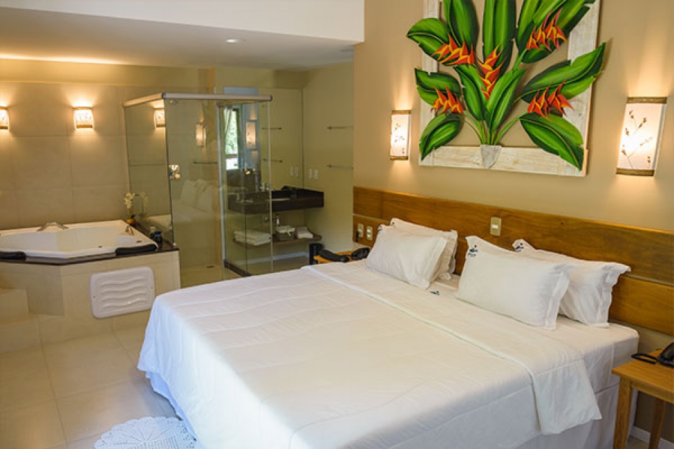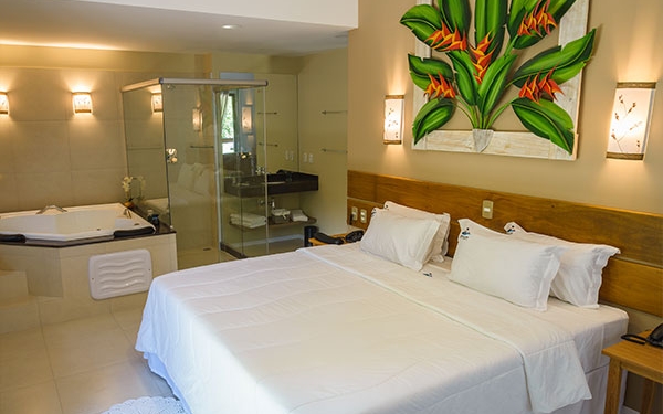 O hotel foi projetado com suítes confortáveis e aconchegantes, oferecendo camas King size, tv plana, ac inverter frigobar, interfone e wifi.