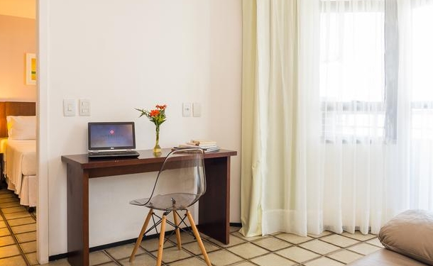 Os espaçosos quartos do Golden Fortaleza incluem ar-condicionado, TV a cabo e sala de estar.