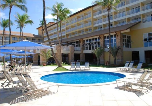 Suíte Presidencial: Apto com metragem e decoração diferenciada, formado por quarto, sala, mesa com capacidade para 8 lugares, copa, 2 TVs de LCD, banheiro com ducha e banheira, além de uma varanda ampla com vista total mar e piscina.