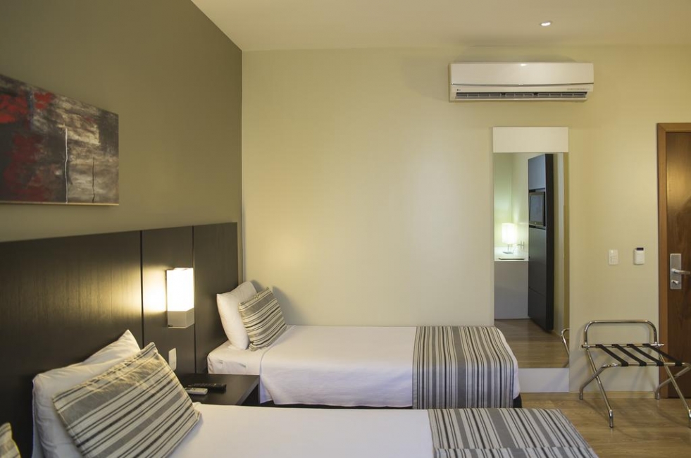 O Petrópolis Grande Hotel oferece quartos modernos com TV LCD, frigobar, cofre, pisos em parquet e uma mesa. Alguns quartos dispõem de um sofá-cama.