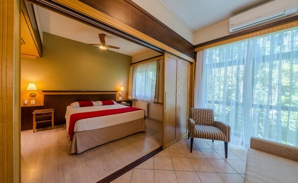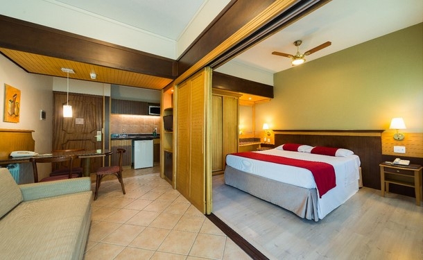 O apartamento Master oferece amplo espaço com todo o conforto e qualidade para sua estada se tornar inesquecível. Com opção de vista para o Vale do Quilombo.