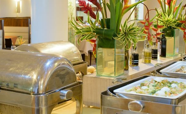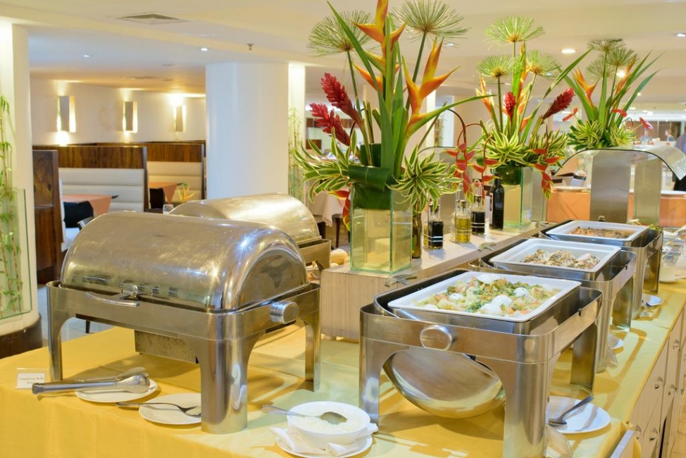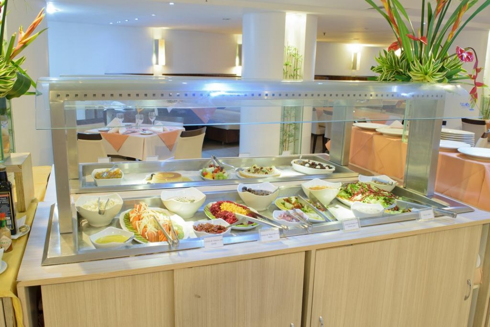 O Restaurante Atlântico prepara pratos das culinárias nacional e internacional, com destaque para peixes e frutos do mar. O café da manhã serve pães e bolos, frutas, lanches e bebidas, assim como tapioca feita na hora e cuscuz. Além disso, o hotel conta com bares no lobby e na piscina, preparando petiscos e coquetéis. O serviço de quarto funciona 24h.