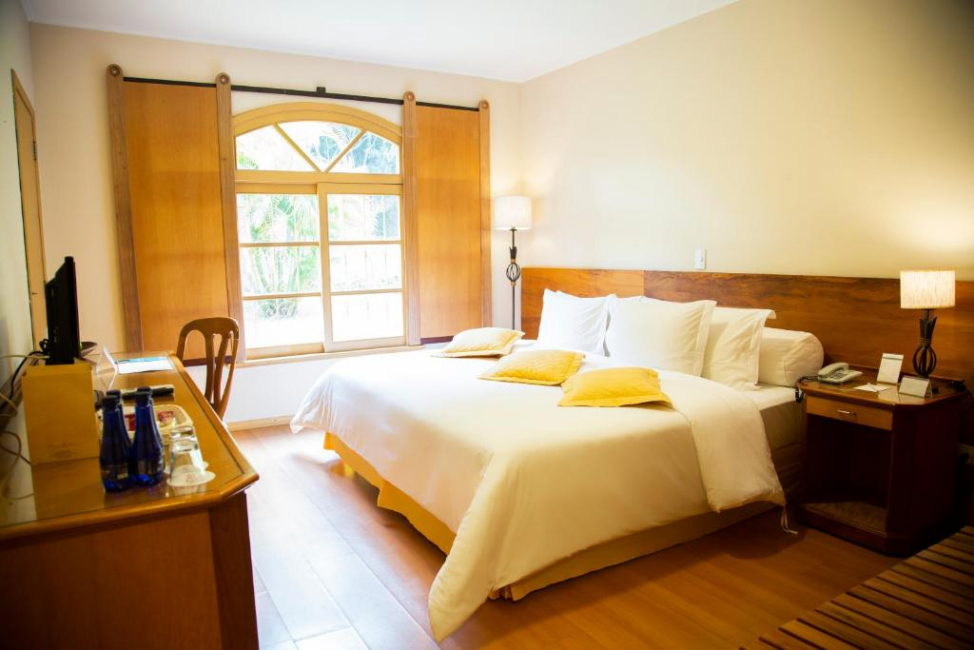 Os apartamentos Luxo Jardim possuem a localização perfeita para aqueles casais ou pessoas que preferem curtir o Hotel pela sua gastronomia e áreas sociais, sem se deslocar muito. Podendo ainda ser conjugado com outro apartamento da mesma categoria e todos possuem janela com vista para o jardim. Acomodação para até 2 pessoas.