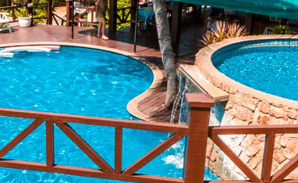 Piscina para adultos com cascata, piscina para crianças, sala de estar, sala de TV, sala de jogos, biblioteca, jogos de mesa.