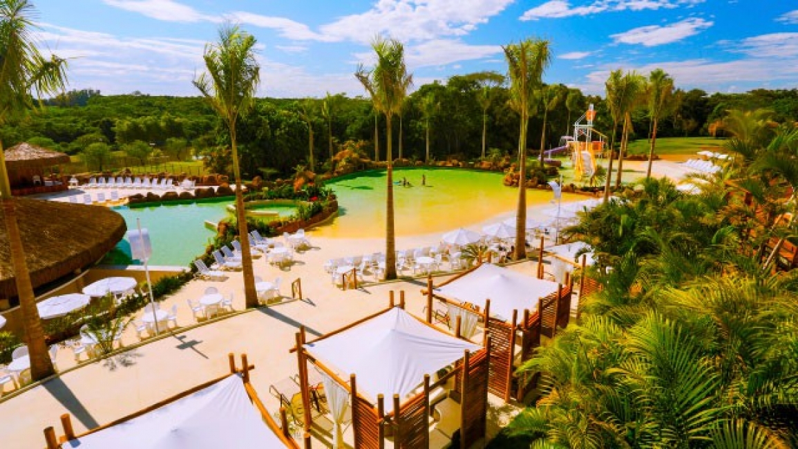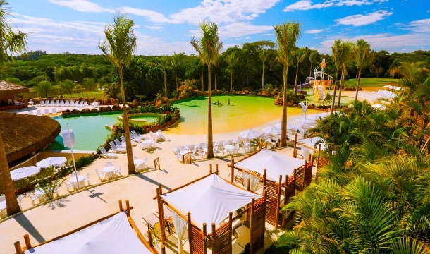 Paisagismo impecável, inspirado pela natureza! A praia termal apresenta espaços e atrações para toda a família: amplo bar molhado para atender confortavelmente os hóspedes, deck com hidros, palcos, entre outros.