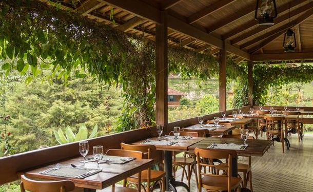 Você pode desfrutar de um buffet de café-da-manhã no restaurante rústico da casa, que inclui uma variedade de frutas, sucos e refeições quentes. Há também um cardápio à la carte disponível.