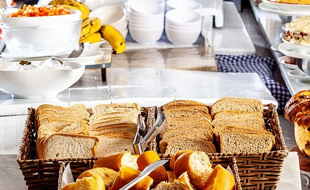 O hotel oferece um café da manhã completo e maravilhoso, priorizando a gastronômia local.