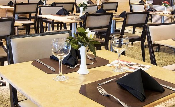O hotel oferece várias opções gastronômicas em seu restaurante e cybercafé. O serviço de quarto está disponível 24 horas por dia. Sem qualquer custo adicional, você poderá saborear um Buffet de café da manhã generoso diariamente.