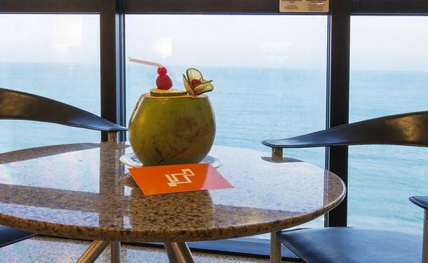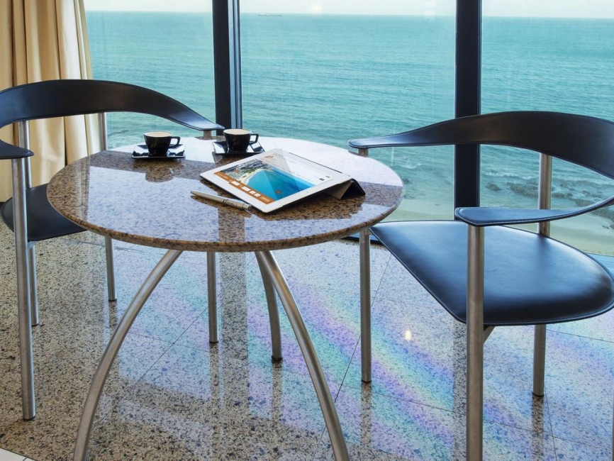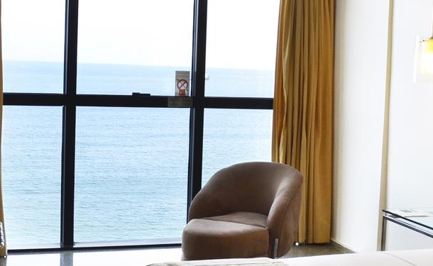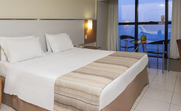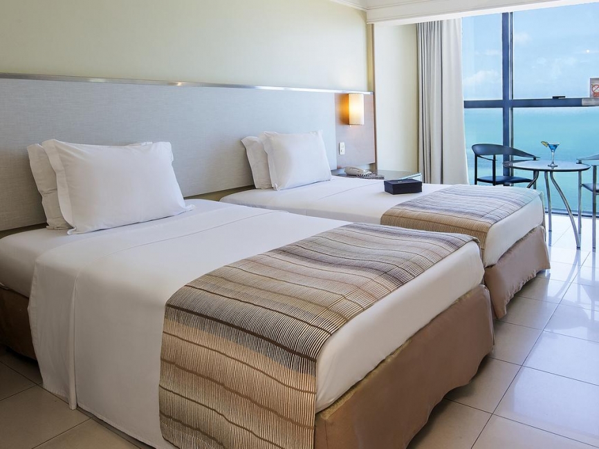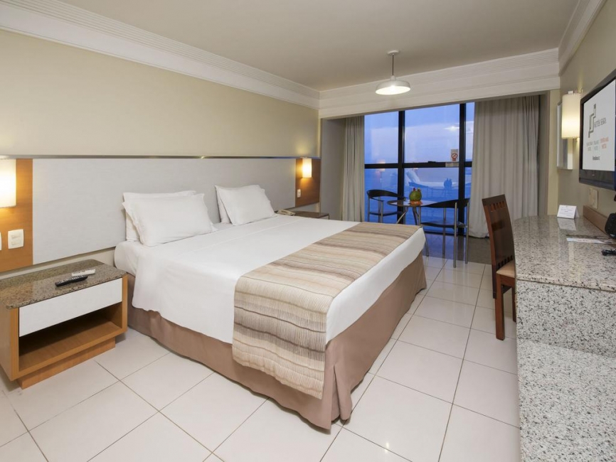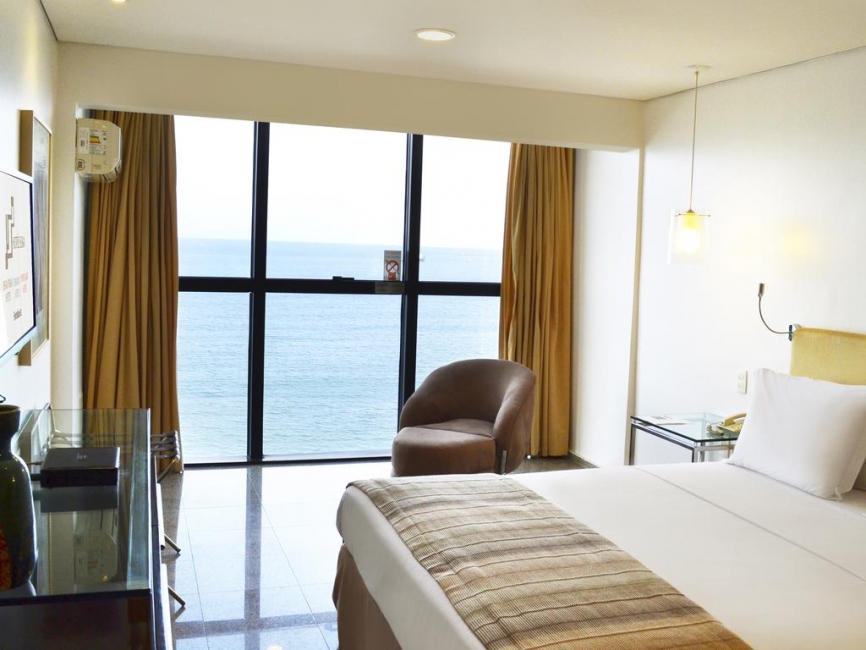 51,9 m² com quarto casal, sala e WC social, vista frente mar, apartamento decorado com obras de artistas locais, dois aparelhos de ar-condicionado individuais, cama king size, internet wi-fi free, TV 32″ no quarto, TV 32″ na sala, rádio relógio, secador de cabelo, cofre eletrônico, telefones no quarto, sala e WC, correio de voz, serviço de despertar, concierge 24h, minibar, mesa para três pessoas na sala, luminárias de cabeceira, TV a cabo com 52 canais, capacidade para até duas pessoas por suíte e room service 24h.