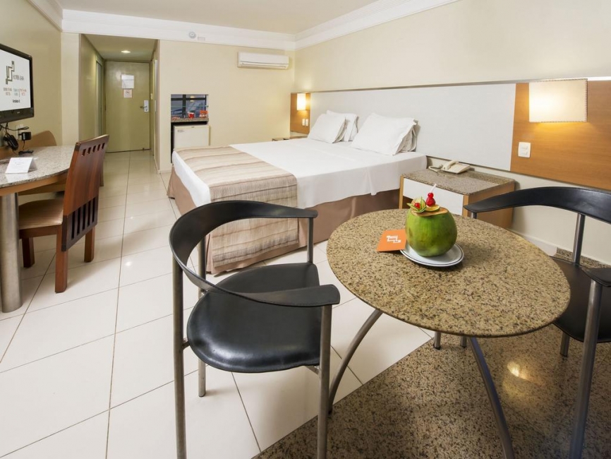 24,7 m², apartamento decorado com obras de artistas locais, vista para a piscina (cidade), TV 32”, correio de voz, serviço de despertar, luminárias nas cabeceiras, concierge 24h, cofre eletrônico, minibar, secador de cabelo, telefones no quarto e WC, aparelho de ar condicionado individual, internet wi-fi free, máximo de três pessoas por apartamento, TV a cabo com 52 canais, mesa redonda para duas pessoas, cama de casal ou solteiro e room service 24h.