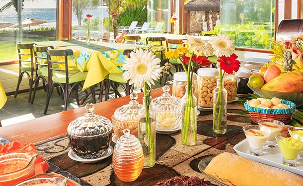 Além das frutas, sucos, pães, bolos, queijos, frios, geleias, doces, etc. nosso farto café da manhã tem presença marcante da culinária regional, destacando as tapiocas, preparadas na hora, a deliciosa cocada, muitas outras gostosuras.