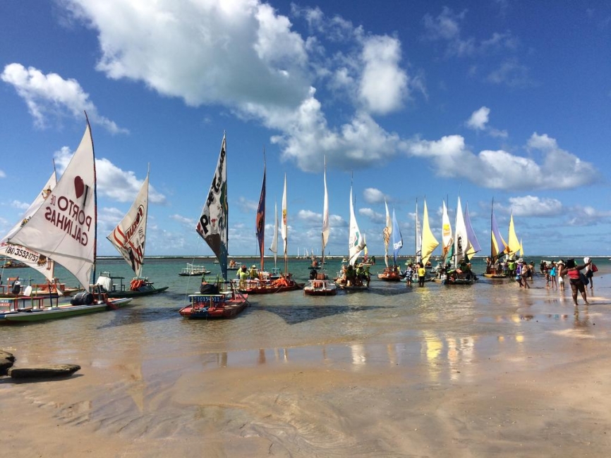 Por todo o espelho d´água, os bons ventos da região - considerada uma das melhores do país para a prática de esportes náuticos - conduzem jangadas e pranchas de kitesurf, que dividem o espaço em perfeita harmonia. Aproveite o passeio de bugue ou de jardineira pra chegar até lá.