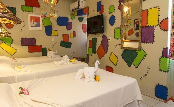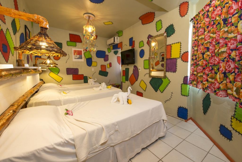 Todos os quartos são bem decorados e dispõe ar-condicionado, frigobar, TV a cabo e telefone.