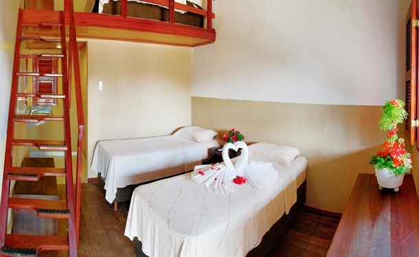 Os apartamentos standard são padronizados com TV 42’’ digital, ar-condicionado, ducha quente, uma cama box casal, uma cama box solteiro, internet Wi-Fi e frigobar. Em frente aos apartamentos há uma rede e uma poltrona no formato parabólica. Está incluso na hospedagem o café da manhã.