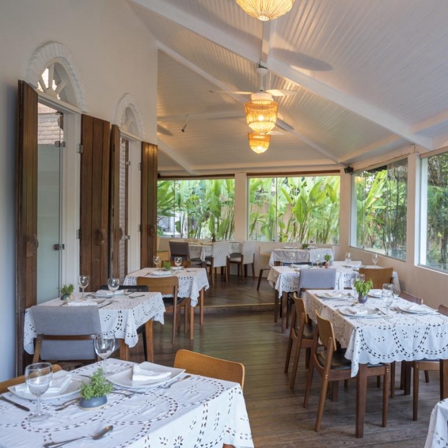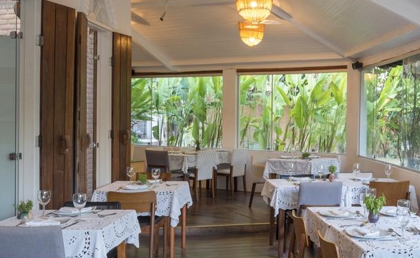 O café da manhã pode ser desfrutado na agradável varanda térrea e inclui frutas da estação, bolos e especialidades locais. O plano de refeições inclui almoço ou jantar do menu à la carte.