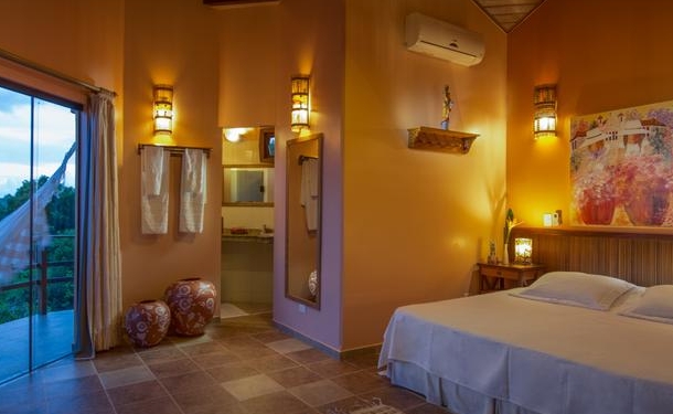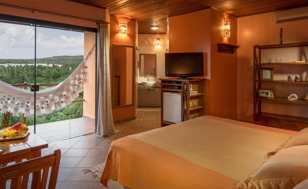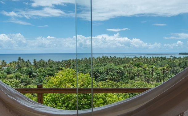 Ampla, charmosa e aconchegante é a acomodação perfeita para desfrutar a mais linda vista do mar de Boipeba.