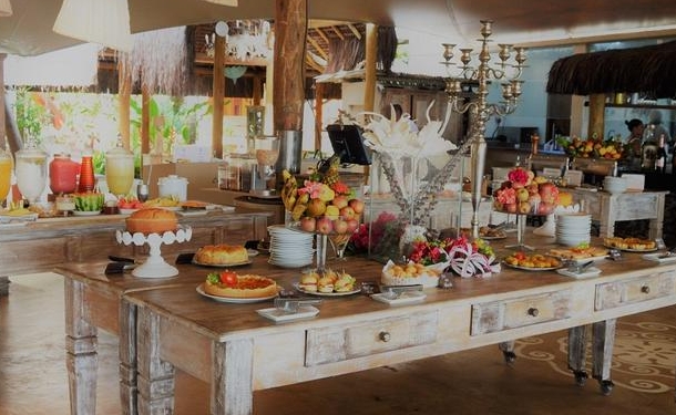 Uma variedade de pratos locais frescos, bem como refeições internacionais, é servida no restaurante no local. Bebidas alcoólicas e não alcoólicas podem ser apreciadas no bar.