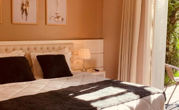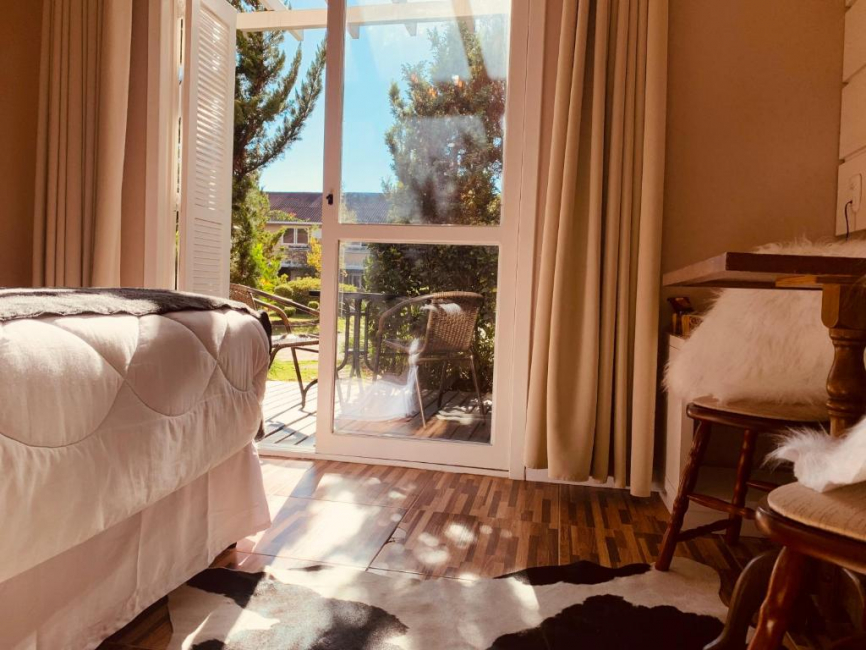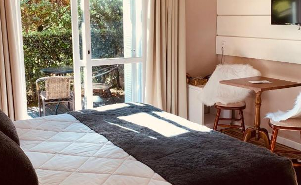 A acomodação possui 1 cama , TV Smart 40", Armário, Mesa de Refeições, Lareira de Ferro, Banheira de Hidromassagem, Secador de cabelo, Ar condicionado Quente/Frio, Varanda e decoração contemporânea.
