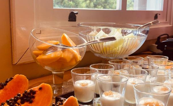 A pousada oferece um delicioso café da manhã.
