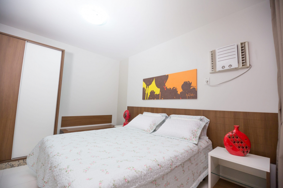 Quarto com armário, ar condicionado e uma cama de casal ou duas de solteiro e, na sala sofá-cama casal com TV. Acomoda confortavelmente cinco pessoas, sendo dois adultos e três crianças ou até quatro adultos. Em estilo flat, os apartamentos possuem cozinha americana com armários, telefone, frigobar, micro-ondas e 01 (um) banheiro.