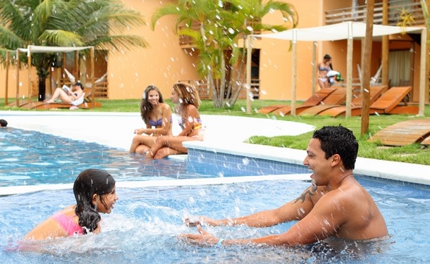 A Piscina Central é cenário das maiores brincadeiras e desafios, onde todo mundo aprende a dançar os hits da Bahia, queima calorias nas excelentes aulas de hidroginástica, pratica esportes aquáticos e interage com a galera. Venha viver essa experiência no La Torre!