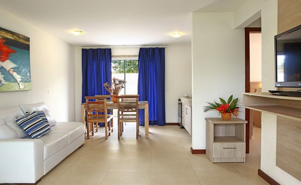 Mais de 70 m² distribuídos em 2 quartos, sala e cozinha conjugadas, varanda com rede vista piscina e/ou jardim e 01 TV na sala. As acomodações Suíte Family são amplas que oferecem tudo o que sua família deseja para curtir férias inesquecíveis.