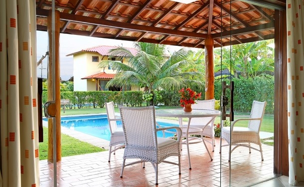 Além dos lindos jardins, área para carros, piscina e varandas com redes, as casas da Vila La Torre possuem 02 pavimentos, 03 quartos, 03 banheiros e toda a comodidade do All Inclusive.