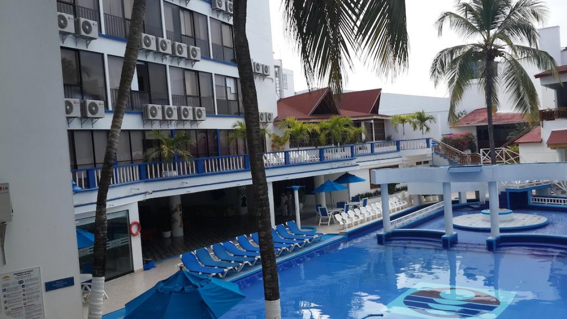 O Sol Caribe é um hotel azul e branco, decorado com palmeiras. A propriedade possui uma piscina ao ar livre e casa noturna na cobertura. Com localização a 1,5 km da Praia de San Andrés.