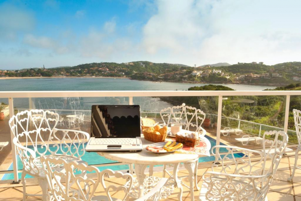 O hotel oferece vista panorâmica da baía das suítes e da piscina no terraço. Além de poder usufuir da semi-exclusiva Praia da Ferradura, a apenas 40 metros do empreendimento.