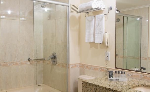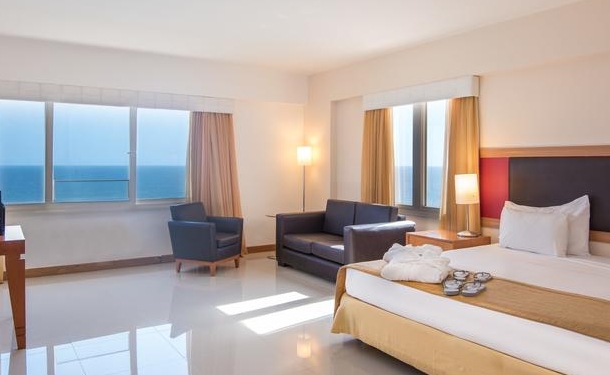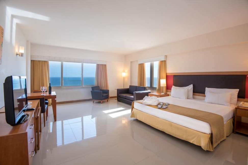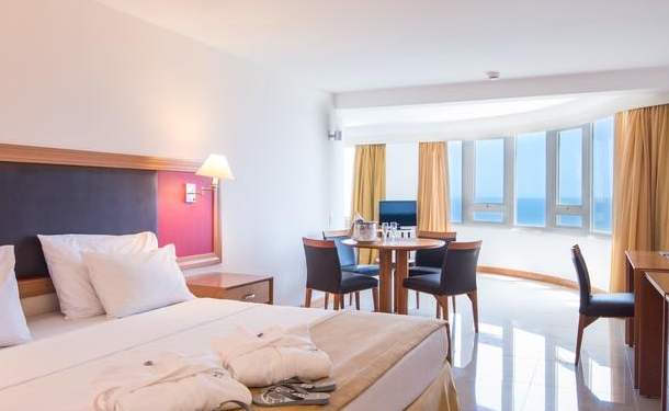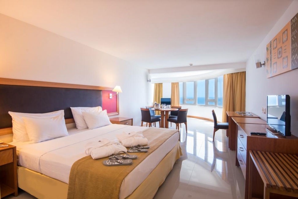 Os quartos do Vila Galé Salvador possuem ar-condicionado e piso frio. Algumas acomodações oferecem uma vista deslumbrante do mar.