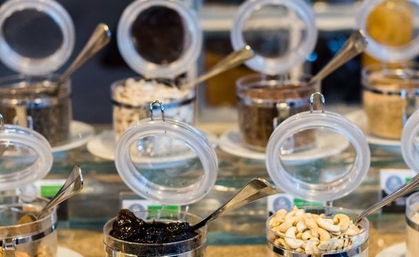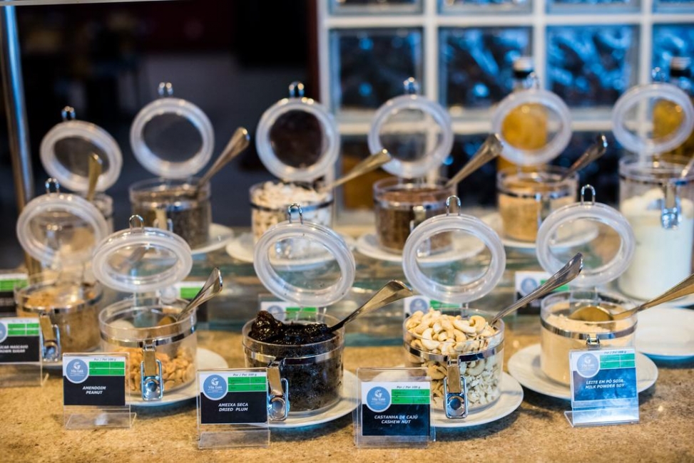 O restaurante do Vila Galé de Salvador serve especialidades regionais de bacalhau e carne, além de contar com uma seleção ampla de vinhos da Casa de Santa Vitória Alentejo.