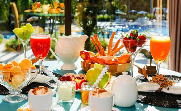 A Meia Pensão inclui: café da manhã e jantar. As refeições são servidas no restaurante, em estilo Buffet, bebidas à parte. O hotel também conta com dois excelentes restaurantes: Allegro, responsável pelas refeições inclusas na tarifa, entre elas o Buffet de café da manhã com mais de 70 itens entre pães, bolos, tortas e alimentos light e diet. La Terrazza (custo à parte), com cardápio à la carte e carta de vinhos especial. E dois bares: Bar da Piscina, com coquetéis, lanches, açaí e sorvetes. Bar anexo ao Restaurante La Terrazza.