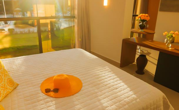 O conforto dessa categoria está na cama king size, ar condicionado, televisão, frigobar, cofre, secador de cabelo, uma mesa para duas pessoas e muito espaço no apartamento. Ideal para dias maravilhosos.