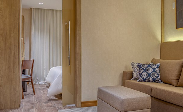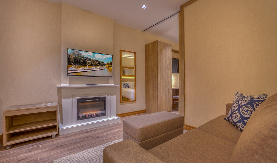 Acomodações charmosas e aconchegantes. Inspirados na beleza natural e arquitetônica de Gramado, os 464 quartos e suítes são decorados com tons neutros e toques modernos, de acordo com a decoração europeia da cidade. Os quartos têm camas confortáveis, Wi-Fi, frigobar e televisão. Além disso, os quartos têm uma lareira elétrica.