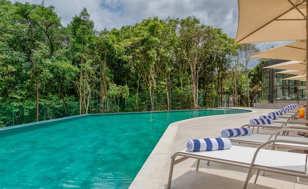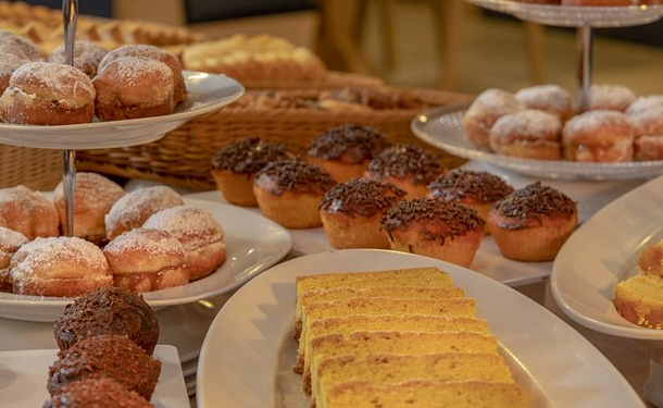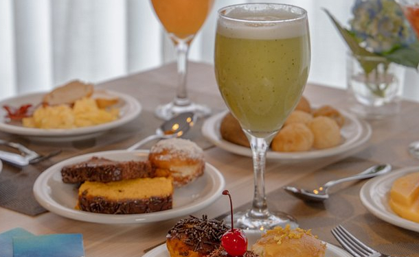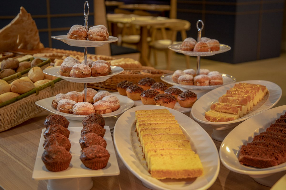 Durante a manhã, desfrute de um buffet completo de café da manhã com variedade de frutas, itens de confeitaria e padaria. No almoço, você pode optar por saborear um dos pratos típicos de um menu à lá carte. À tarde, experimente um chocolate quente na cafeteria ou desfrute de um drink à beira da piscina.