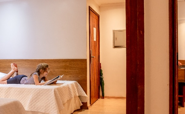 Possuem 36m² (01 cama casal box + 02 solteiro; acomoda até 04 pax) equipados com ar-condicionado, telefone, Tv LCD 32”, canais a cabo, aquecimento central, bancada de trabalho, cofre, frigobar, relógio-despertador e possui secador de cabelo, gerador, portas largas e barras de apoio no banheiro